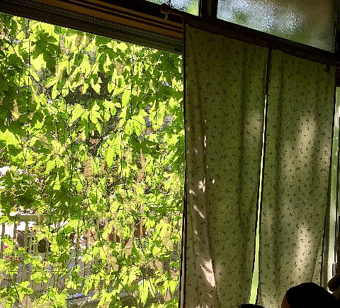 虫に食われたりしたけれども、今年もゴーヤの緑のカーテンが出来た