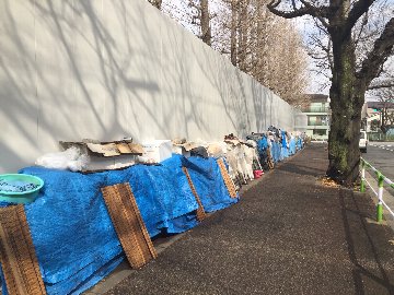 ホームレスの人と会った ■ Kさんのこと たまに荒川沿いをジョギングしたりするのだが、途中の橋のたもとなどに見事な技で W家Wを立てて住んでいる人を見かけてはそんな方といつか話をしてみたいと思っていた。 そんなチャンスが先日あった。 様々にお世話になっている方のひとりに、クリスチャンで山谷の労働者の支援活動の経験 のある方がいる。数年前から仕事と生活の合間に、近所で路上生活をしている方(Kさ ん)の話し相手になったり、時々オニギリを持って行ったり、社会復帰のための橋渡しを したりしているという。 話を聞いてその路上生活をしている方に興味をもった。それで。Kさんの住まい(路上) を訪ねて話をさせていただいた。 とても寒い日だった。 Kさんは、暑さ寒さをしのげることもあって昼間はよく図書館などで本を読んでいるとい う。(図書館では、スタッフの方や一般の利用者は困惑しているだろう)日本国憲法の話 やそれによって保証されている国民の生きる権利について話してくれた。自分などよりよ ほど通じているのだが、権利のことばかりに話が偏っているような気がした。同時に、自 分の話に耳を傾けてくれる人がいるという事に飢えているように感じて、『会話のキャッ チボール』よりも、Kさんの話をひたすらに聞く事が今の自分がKさんに出来る事なのだ、 というように思った。 Kさんの知識レベルは高く、路上生活に入る前には社会の中にきちんとした足場を持って いたのではないか、と推測した。 Kさんは現在の自分の状況を変えたいという強い思いはもっていないように感じた("慣れ た"のかもしれない)のだが、ただ、現在の"住まい"は来年に控えた東京オリンピック関 連の施設の工事が進む一角の路上であり、そんなことから行政の役人から立ち退きの勧告 を受けているという。 行政としてはオリンピックという国際的な催し物の中で、国内外に"見せたくない景色"は 排除したい、という思惑がある事は容易に想像できるのである。 立ち退き交渉の中で行政は少し遠い場所にある一時避難的な施設を提案しているのだが、 現在の場所より遠いことや、かつてそういった施設での理不尽な扱いを受けたこと(ホー ムレスを受け入れて生活保護費をピンハネするような組織がある事を知った)から、Kさ んはその提案を拒否しているのだと言う。 前述した支援をしている方の話によると、行政は一方的な強制排除はせずに、裁判(アリ バイ的でしかないだろう)が行われるという。少しでも良い方向に向くように、路上生活 者の支援をする弁護士の方と話をしたそうだが、Kさんに"折り合う"という姿勢が無いた めにうまくいっていない、という事だった。それは、Kさんの日本国民としての権利意識 と、今現在自分の体が健康であること、現在の生活に不満を持っていない、という事が背 景にあるように感じたが、安定した衣食住を維持している自分にはわかり得ない事なのだ ろうと思った。Kさんの所有物、30メートルくらいある。 時折、街中や公園でKさんのような路上生活者を見かけるが、いつも自分と特段の違いは ないと思うのである。たまたまそういう状況にならずにこっち側に踏みとどまっただけで 自分と何も違いはない、と。 むしろ、路上に寝起きの場所を確保して整理整頓している荷物などを見て、自分にはそれ だけのタフな生命力があるだろうか?と、頭をかすめる。 もちろん自分は自分の価値観の中で生きてきたつもりだが、目に見えないものも含めたさ まざまな分岐点を、意識するしないも含めて通過してきた結果として今の自分の生活があ るだけで、自分とその方の違いは大きいものではないように思うのである。 今頃は裁判が終わっているはずであるし、オリンピックはもう目の前にきている。 Kさんは今どうしているのだろうか。 2019年 6月