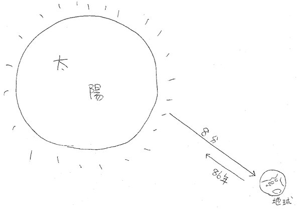 太陽と地球のあいだは、光で8分、新幹線で86年かかる距離だという しかし、人間は宇宙全体の大きさはいまだ把握していない 確認されたもっと最も遠い天体の場合、その天体からの光は130億年かけて地球 まで到達しているという・・・ 蝉の鳴く夏の夜に 2008年 8月