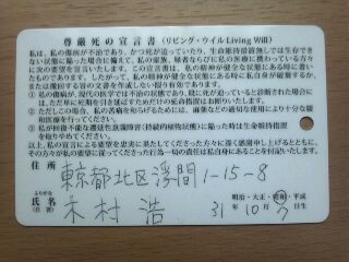 まだありません。よって、尊厳死教会の会員だからといって(カードを所持しているとし